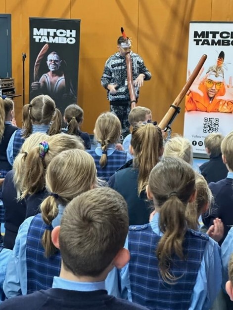 Recently, we enjoyed a wonderful incursion with First Nations International Artist, Mitch Tambo. Mitch is a renowned artist who has achieved recognition in Australia and across the World. As part of our cultural awareness and inclusion, our students had the opportunity to sing and dance along to Mitch’s music, and to learn some of his language and culture. Mitch also shared stories of how he has dealt with tough times in his life and used music to support his own wellbeing. It was a treat to have him perform at TLS and share his culture with us as a part of his Walanbaa Youth Tour.
